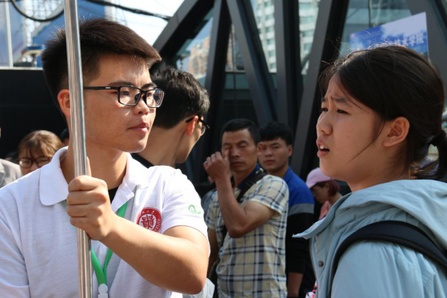 整队的工作听起来十分轻松随意,但事实却并非如此。特别是当车辆运力不足的时候,安抚新生与新生家属就成为了他们必须去做的工作。
