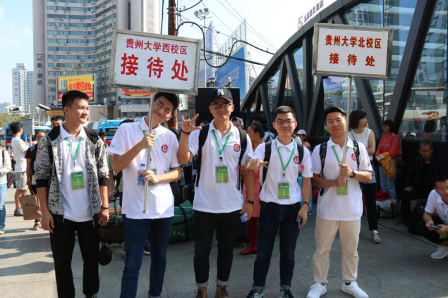 2017年9月12日晨,还未完全褪去清冷的贵阳火车站,来自350vip8888新葡的京集团的迎新志愿者们正准备迎接2017级新生的到来。校方安排的九辆大巴车在贵阳市体育馆停车场整装待发,只需新生与新生家长队伍坐满车厢就立即发车开往350vip8888新葡的京集团。