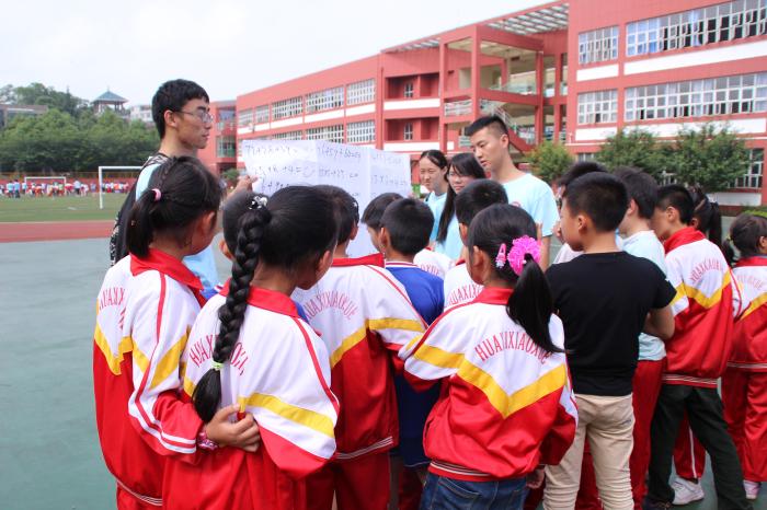 活动中花溪小学的小朋友们团结协作,互相关心互相帮助,在党员同志们的细心指导下完成了“热身活动”、“聪颖算术”、“机智萝卜蹲”、“球球水上之旅”和“爱的抱抱”等活动。在活动中小朋友们的身心都得到了充分的锻炼,同时也了解到了团队协作的重要性。