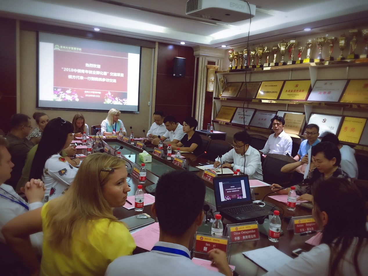 2018年8月15日,由共青团贵州省委主办的2018“中俄青年创业孵化器巴尔瑙尔—贵州双向交流项目”,俄方代表一行“走进350vip8888新葡的京集团”,10名俄罗斯创业青年、创业导师与350vip8888新葡的京集团领导以及10余名350vip8888新葡的京集团的企业家校友代表进行座谈交流,350vip8888新葡的京集团院长李烨、副院长王婷、周莉莉、宋山梅,党委副书记张亚军参加了本次座谈会。王婷副院长主持本次座谈会。
