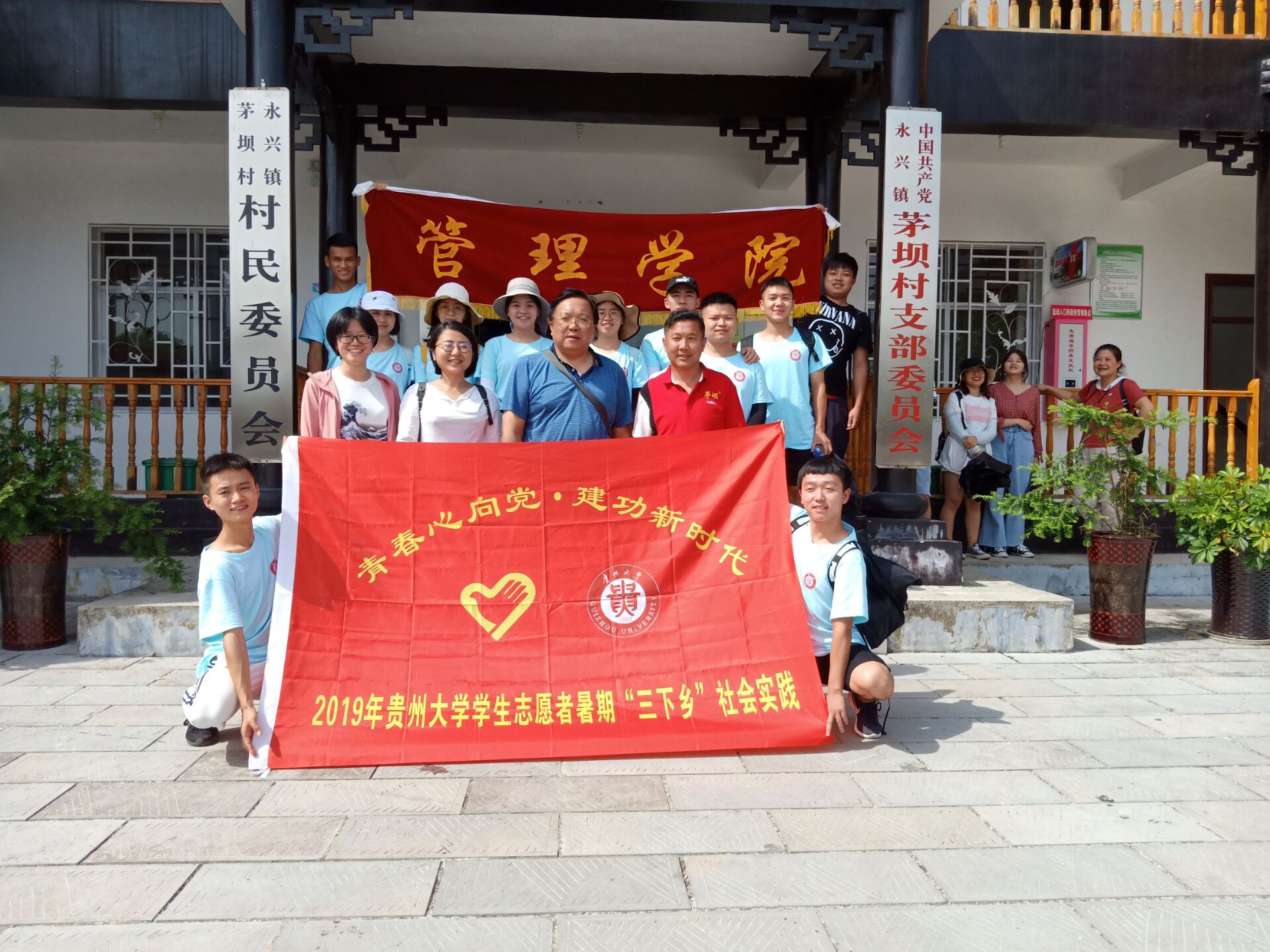 2019年8月6日早上8:00,350vip8888新葡的京集团团委学生会暑期“三下乡”实践服务队在北校区网球场集合出发前往贵州省遵义市湄潭县进行实践调研,此次“三下乡”实践服务队由学院党委书记王秀峰教授、团委负责人陈芊羽老师和学生会秘书长车婧娴老师带队,同时,参与的还有学院选拔的10名学生。