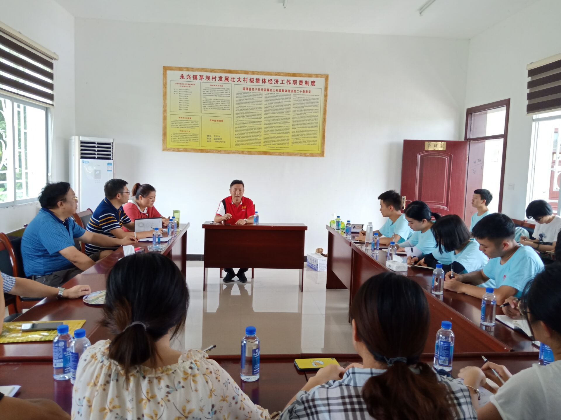 座谈会中,肖支书对茅坝村的基本情况及发展历程进行了详细的介绍,肖支书强调,绿色发展始终是茅坝村在探索发展中所坚持的重要理念与指引。茅坝村抓住贡米文化因地制宜发展产业,坚持“党建引领、资源整合、能人带动、抱团发展、共同富裕”六大理念,培育了“竹香”、“龙脉皇米”、“万岁米”等多种产线稻米,逐步建立发展农产品加工类公司、科技公司和旅游公司等企业,为茅坝村带来了巨大的经济效益,推动了当地产业经济发展。听取了肖支书的汇报后,王秀峰书记及同学们对茅坝村的发展与现状提出问题与看法,肖支书对问题一一进行解答。