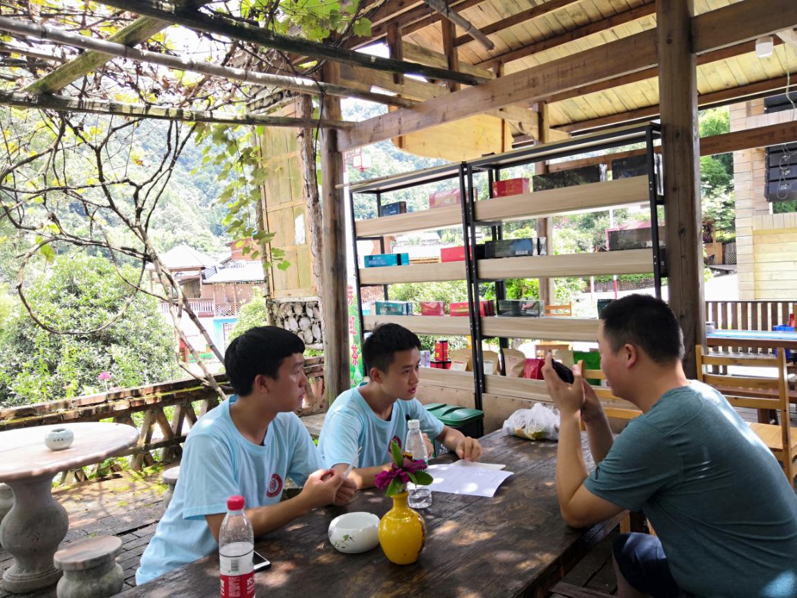 下午,实践服务队在王书记和各老师的指导下,分为三组前往各地进行问卷访问调研,收集调研相关信息资料。其中,创意经济组前往湄潭县金花村七彩部落,在当地领导的组织引导下对当地创意经济的发展情况进行有关了解;农业组前往湄潭县黄家坝大寨村、沙坝村对当地农业发展有关情况进行调研访问;居民生活组前往湄潭县民建村等地调察访问当地居民生活污水排放、生活垃圾处理等情况。