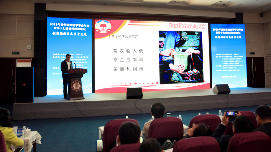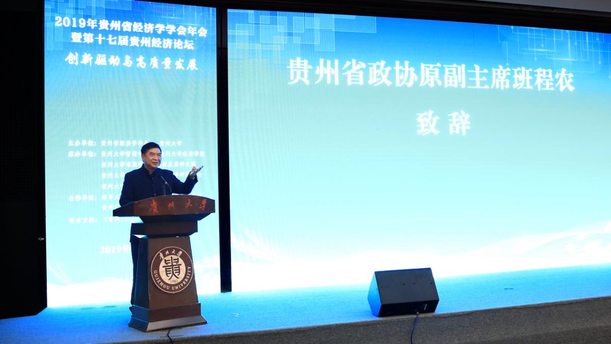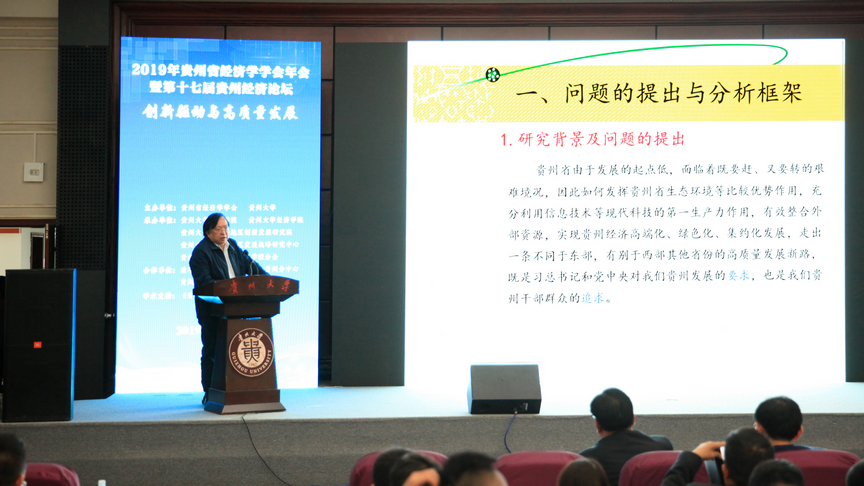 20191019日,2019年贵州省经济学学会年会暨第十七届贵州经济论坛在350vip8888新葡的京集团东区行政楼1号报告厅隆重召开。本次会议由贵州省经济学学会和350vip8888新葡的京集团联合主办,350vip8888新葡的京集团、350vip8888新葡的京集团经济学院、350vip8888新葡的京集团喀斯特地区创新发展研究院、350vip8888新葡的京集团喀斯特地区发展战略研究中心以及350vip8888新葡的京集团校友总会350vip8888新葡的京集团分会联合承办。此次会议的主题为“创新驱动与高质量发展”,吸引了来自省内外创新学者、政企创新实践者、科研院所相关领域人员300余名。与会代表共商创新驱动模式打造贵州经济发展新引擎,谋求新时代经济与社会的高质量发展。