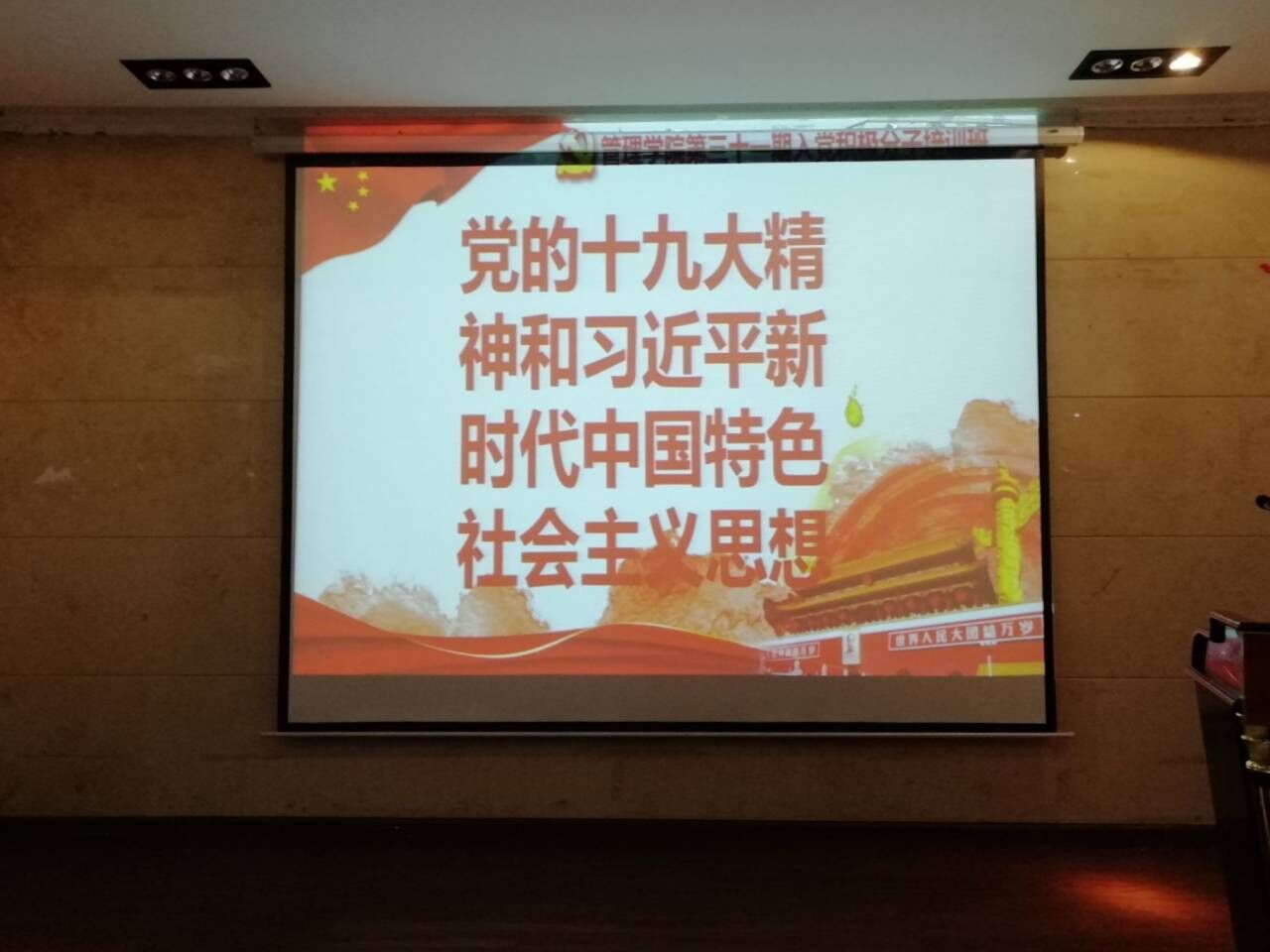 350vip8888新葡的京集团第三十一期入党积极分子培训课于10月20日上午9点在学院三楼报告厅举行。校党委副书记骆长江受邀为350vip8888新葡的京集团第三十一期入党积极分子培训班授课。本次课程骆长江书记围绕“党的十九大精神和习近平新时代中国特色社会主义思想”的主题进行讲解。