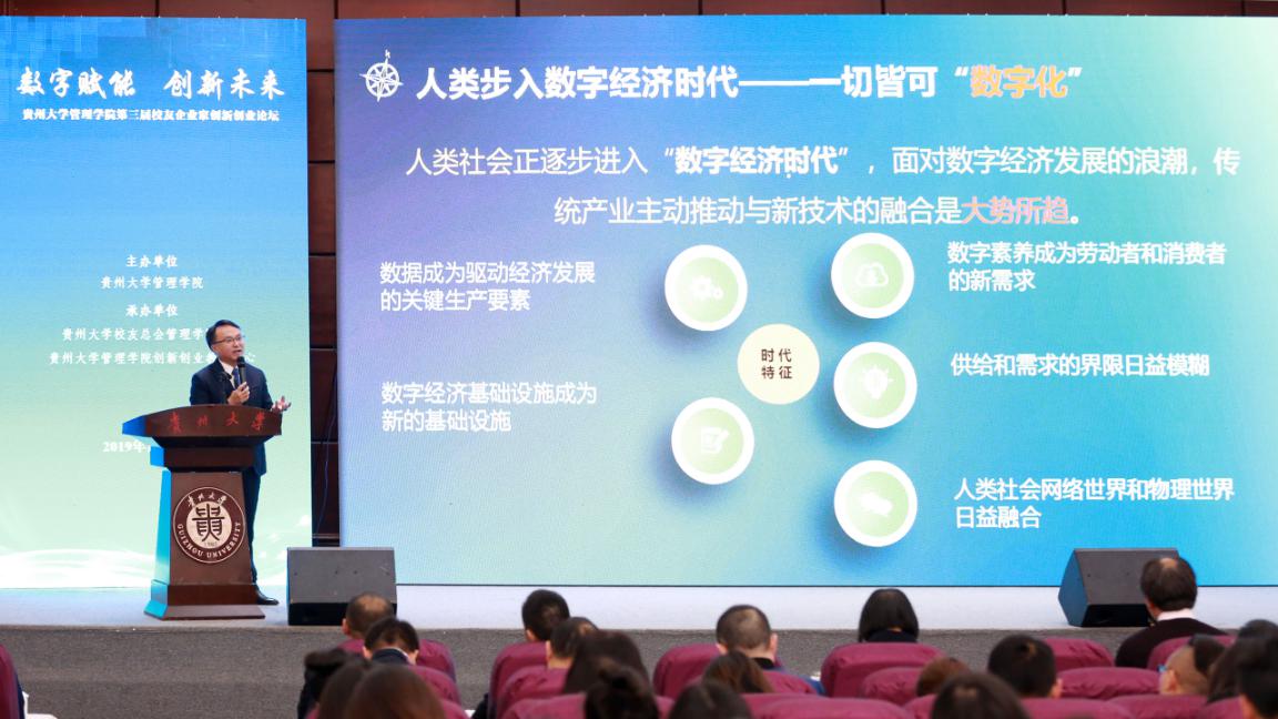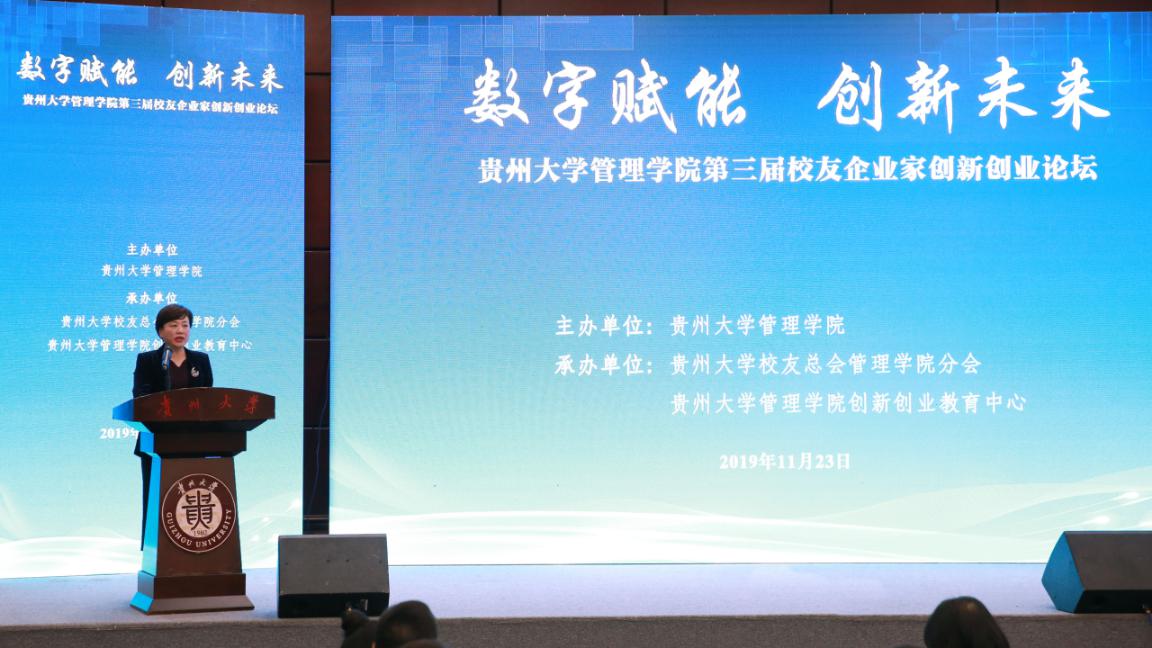 本届校友企业家创新创业论坛以“数字赋能,创新未来”为主题,李烨教授表示,“贵州后发赶超不拖全国后腿,我们找到了后发的战略引擎和路径,就是我们发展大数据产业,我们成为了全国发展大数据产业的高地,在这个过程当中我们说大数据产业的发展为企业的转型升级、创新创业也提供了很多的机遇和支持,所以贵州怎么样把大数据产业的旗帜举稳举高,我们还需要更多的围绕大数据核心产业的发展以及大数据和传统产业的融合发展,我们还需要去做更多的探索、做更多的开创。”