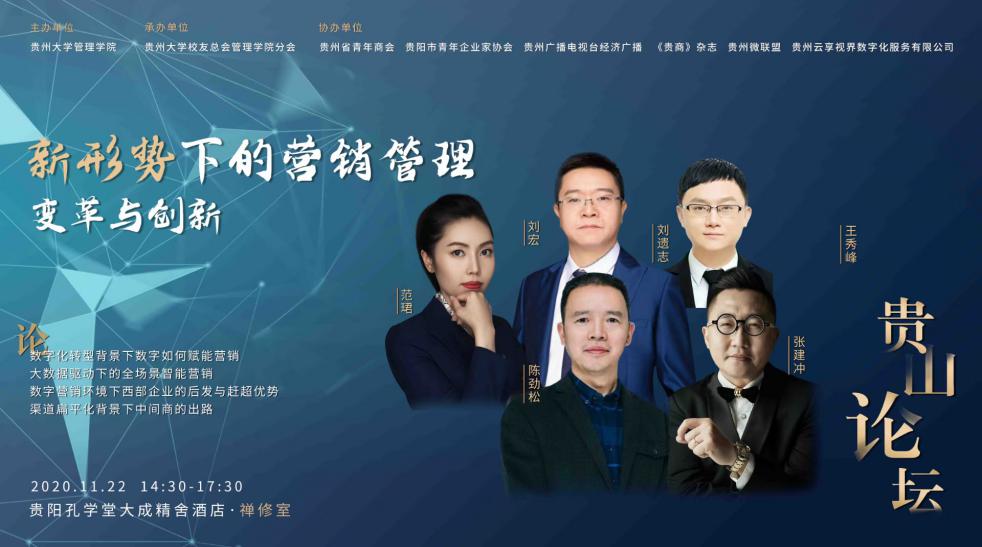 2020年11月22日下午2:30,由350vip8888新葡的京集团主办、贵阳市青年企业家协会、贵州云享视界数字化服务有限公司等单位协办的贵山论坛在贵阳孔学堂大成精舍酒店召开。