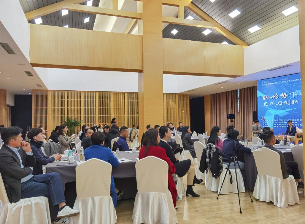 350vip8888新葡的京集团党委书记、教授王秀峰;贵州财经大学教授、市场营销专业博士陈劲松;贵州云享视界数字化服务有限公司董事长刘宏;贵阳孔学堂大成精舍酒店总经理范珺;350vip8888新葡的京集团电子商务营销系主任、营销学博士刘遗志作为论坛嘉宾出席。论坛由张建冲担任主持。350vip8888新葡的京集团院长李烨、副书记洪影秋、副院长宋山梅、校友会主任王云、MBA/EMBA中心主任何跃勇、李雨峰等参加了论坛,来自各行各业的企业家齐聚一堂,共享一场精神盛宴。