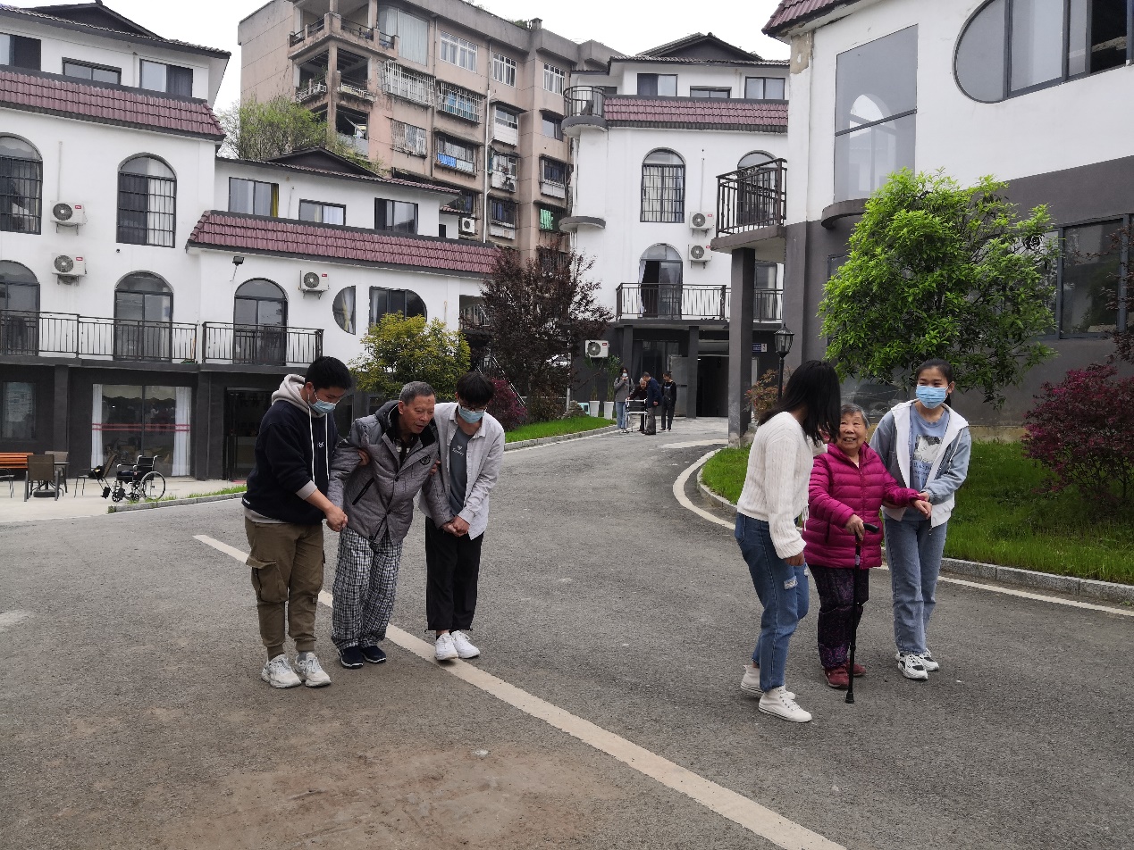 完成打扫卫生的工作后,工作人员安排同学们陪伴老人外出散步,聊天话家常,氛围融洽,让老人感受生活的希望与美好。