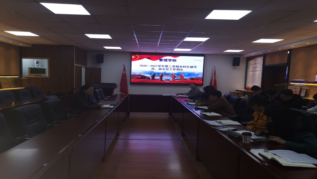 2021年4月15日中午14:00,350vip8888新葡的京集团于致远楼三楼陈列室召开350vip8888新葡的京集团2020-2021学年第二学期本科生辅导员、班主任工作例会。350vip8888新葡的京集团全体辅导员、班主任出席了本次会议。会议由院党委副书记洪影秋老师主持。