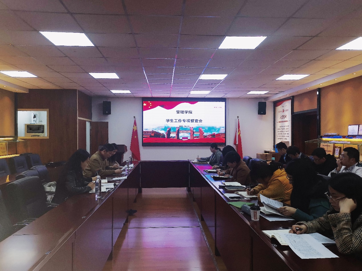 洪影秋副书记对校专项督查组第六组到我院开展专项督查工作表示欢迎,并就学院学生工作总体情况和重点工作作了介绍。350vip8888新葡的京集团现有在校生1178名,24个班级,19位班主任。学院紧紧围绕“三全育人”,要求全体教师在学习、生活等各个方面为学生提供指导与帮助。学院紧抓学生成长成才这根主线和死守学生安全这根底线。院领导、班主任、辅导员通过走访寝室、召开班会、个人沟通交流等方式关心关爱学生成长,为学生成才保驾护航。学院辅导员和班主任定期认真组织开展学生安全排查工作。在开展过程中,分管学生工作的党委副书记、辅导员和班主任对学生关心关爱,把排查、教育与管理紧密结合起来,增强了与学生的联系,切实消除了一定的安全隐患,确保学生生命财产安全和校园安全稳定。学院党政领导高度重视 “博学计划”和“征兵工作”的开展,多次召开专门党政联席会议。“博学计划”方面,学院一边选派责任心强,业务能力优秀的老师担任相关课程老师。另一边,学院在可用教室紧张的情况下,指定了四间“博学计划”专用教室。各班主任、辅导员深入学生寝室,召开班会,为学生提供专业辅导。征兵工作方面,学院成立征兵工作小组,定期召开全院范围内的征兵宣传动员会。学院领导、班主任、辅导员采用“一对一”等多种形式,多层次动员。目前已有一名应届生成功入伍,多名同学准备上站。
