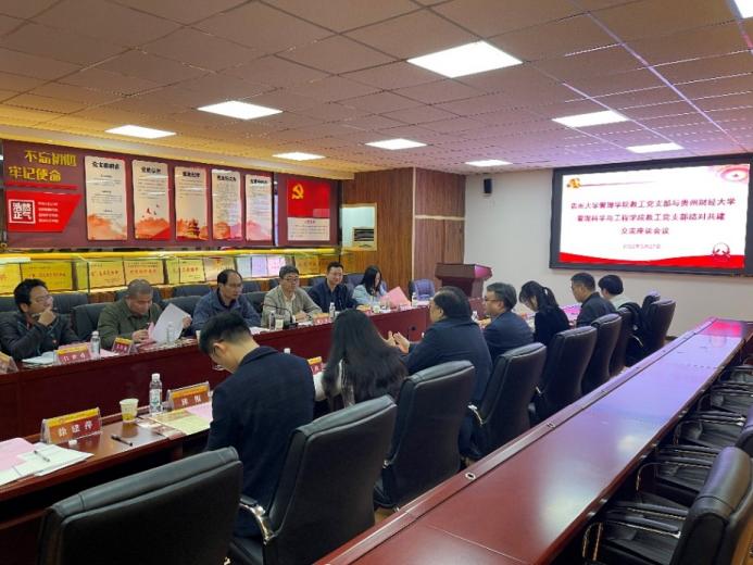 为深入贯彻落实习近平总书记在中国人民大学考察时的重要讲话精神,进一步探索党建引领学科发展,5月27日上午10:00,350vip8888新葡的京集团教工党支部与贵州财经大学管理科学与工程学院教工党支部开展了主题为“结对共建促党建,协同创新谋发展”的交流座谈会。