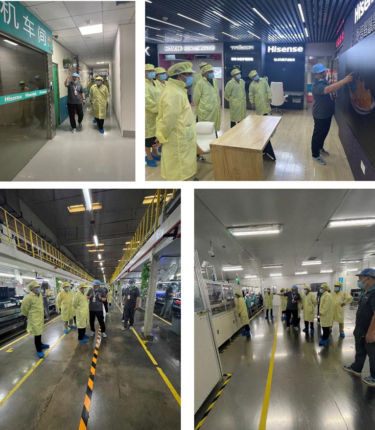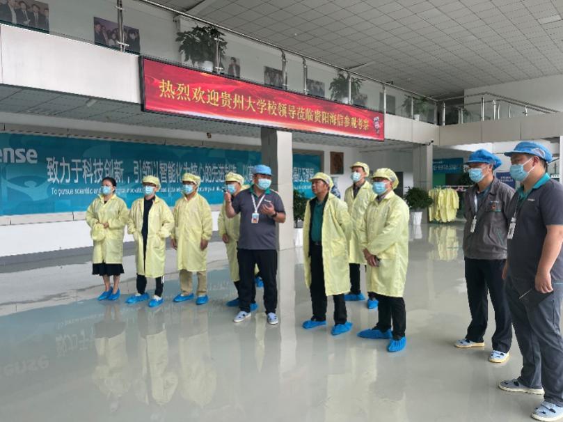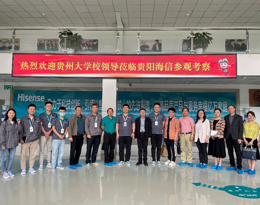 在贵阳海信电子有限公司总经理安玉江的陪同介绍下,李军旗副校长一行参观了公司的产品展览室、生产车间,了解生产流程,观看公司新产品研发等。