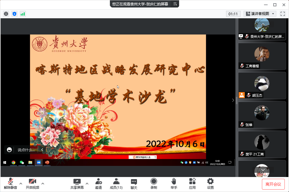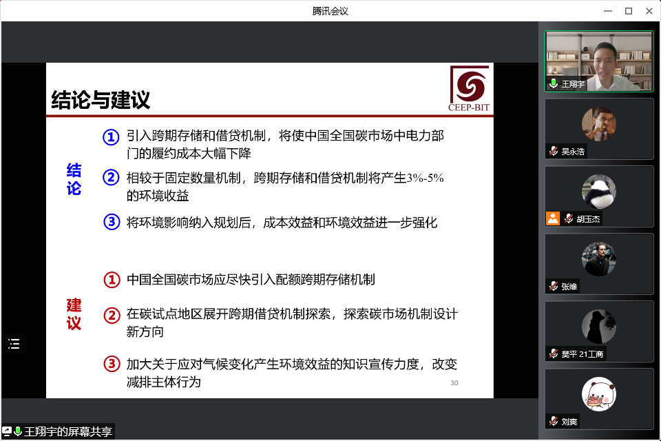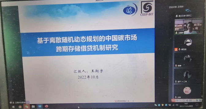 按照350vip8888新葡的京集团疫情期间工作部署,喀斯特地区发展战略研究中心(以下简称基地)于2022年10月6日线上举办第十期学术沙龙活动。本次沙龙邀请到了国家生态环境部环境发展中心的王翔宇博士。王博士的报告题目为“基于离散随机动态规划的中国碳市场跨期存储借贷机制研究”,沙龙由基地副主任贺庆仁副教授主持。350vip8888新葡的京集团80多名教师以及博士、硕士研究生参加了本次沙龙活动。