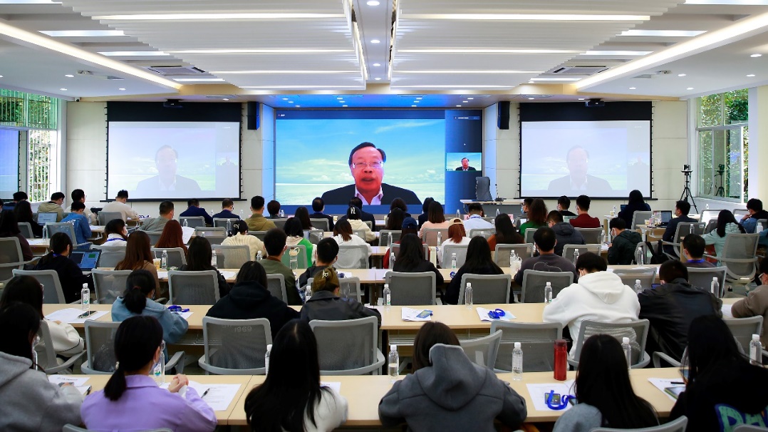拉曼大学副校长钟志强为开幕式致辞。他鼓励支持两国学生进行交换留学、开展学术交流专题分享等活动,体验一方历史、一方风情,使留学生生活更加丰富而充实。同时强调学生要开拓视野,加强文化交流。随后他指出,本次研讨会将围绕商业、全球伙伴关系以及科技方面等相关课题进行,通过主讲嘉宾和相关专家的分享,了解国际形势,做到与时俱进、知行合一。最后,期待两校师生能够早日恢复线下探访和学习交流合作。