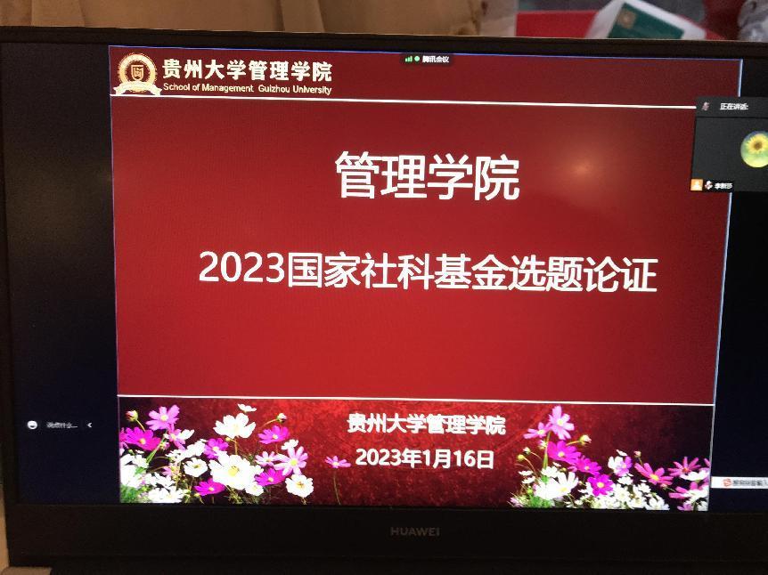 2023年1月16日上午9点我院在腾讯会议召开了350vip8888新葡的京集团2023年国家社科基金申报第二次选题论证会,会议由副院长罗敏主持。会议邀请了李景勃教授、周乐欣教授、安世遨教授作为论证专家对我院申报2023年国家社科基金的10位老师的选题进行了论证交流。350vip8888新葡的京集团院长李烨教授作为学院主要领导和论证专家参加了此次会议。
