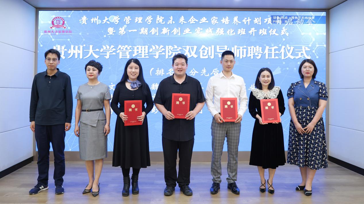 聘任贵州恒丰体育管理有限公司董事长文筱婷,贵州吉源驾驶培训学校有限公司董事长魏大焜,贵州本道创客服务有限公司总经理蒋睿,贵州世纪科环生态农业研究院院长姜蚓,贵州中黔金科产业投资有限公司董事长兼总裁高泳波,贵州悦算科技发展有限公司董事长朱美诗,贵州中房金石房地产开发集团董事长王美艳,中国邮政储蓄银行贵州省分行办公室总经理李星明,上海蚁界直播基地合伙人邓业灿,贵州安能快运物流股份有限公司贵州省总经理彭井飞,贵阳中财会计培训学校校长刘丽为学院“双创”导师。