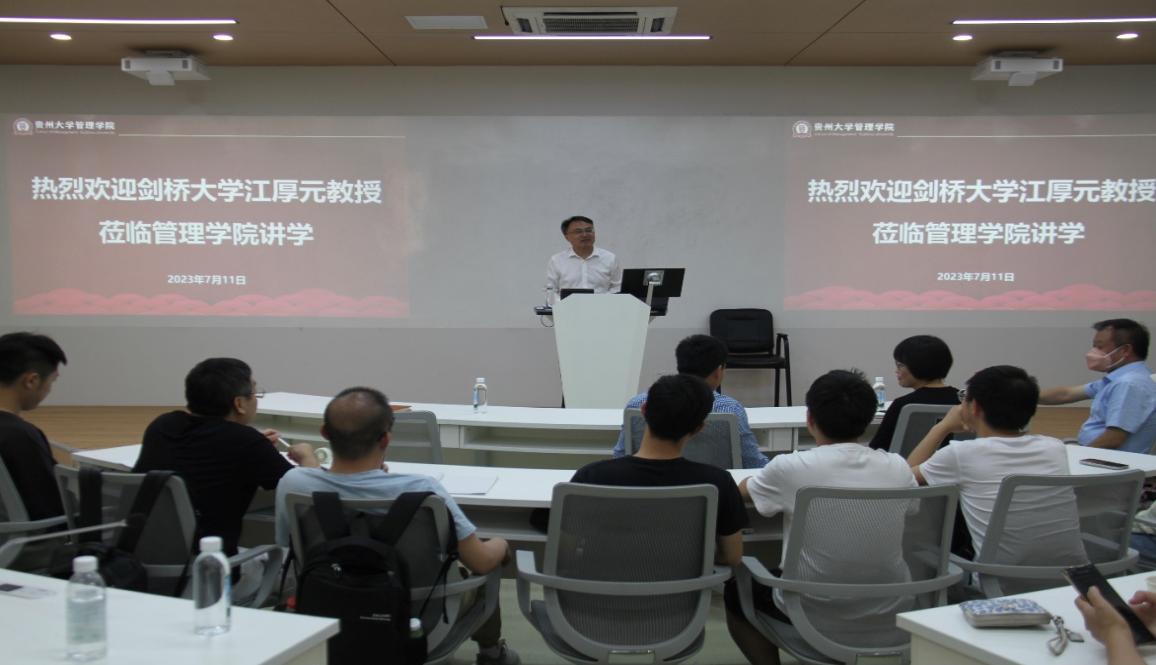 7月11日下午,350vip8888新葡的京集团学术讲座顺利举行,本次学术讲座邀请到来自剑桥大学商学院的江厚元教授主讲,本次讲座由350vip8888新葡的京集团李盾博士主持。