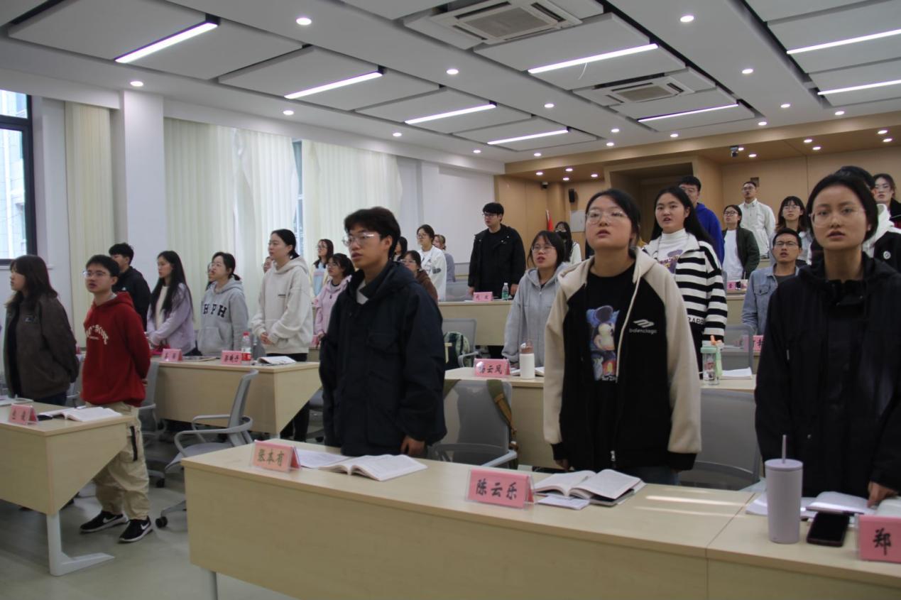 最后,李院长带领学员们对习近平新时代中国特色社会主义思想、习近平重要讲话系列精神、党的二十大报告进行深入学习。他指出“使命呼唤担当,使命引领未来”,同时他对同学们寄予殷切期望,强调青年是实现中国梦的重要力量,同学们要积极向党组织靠拢,要始终不忘初心,牢记使命,让青春在全面建设社会主义现代化国家的火热实践中绽放绚丽之花!希望同学们能早日加入中国共产党,成为一名优秀的共产党员!