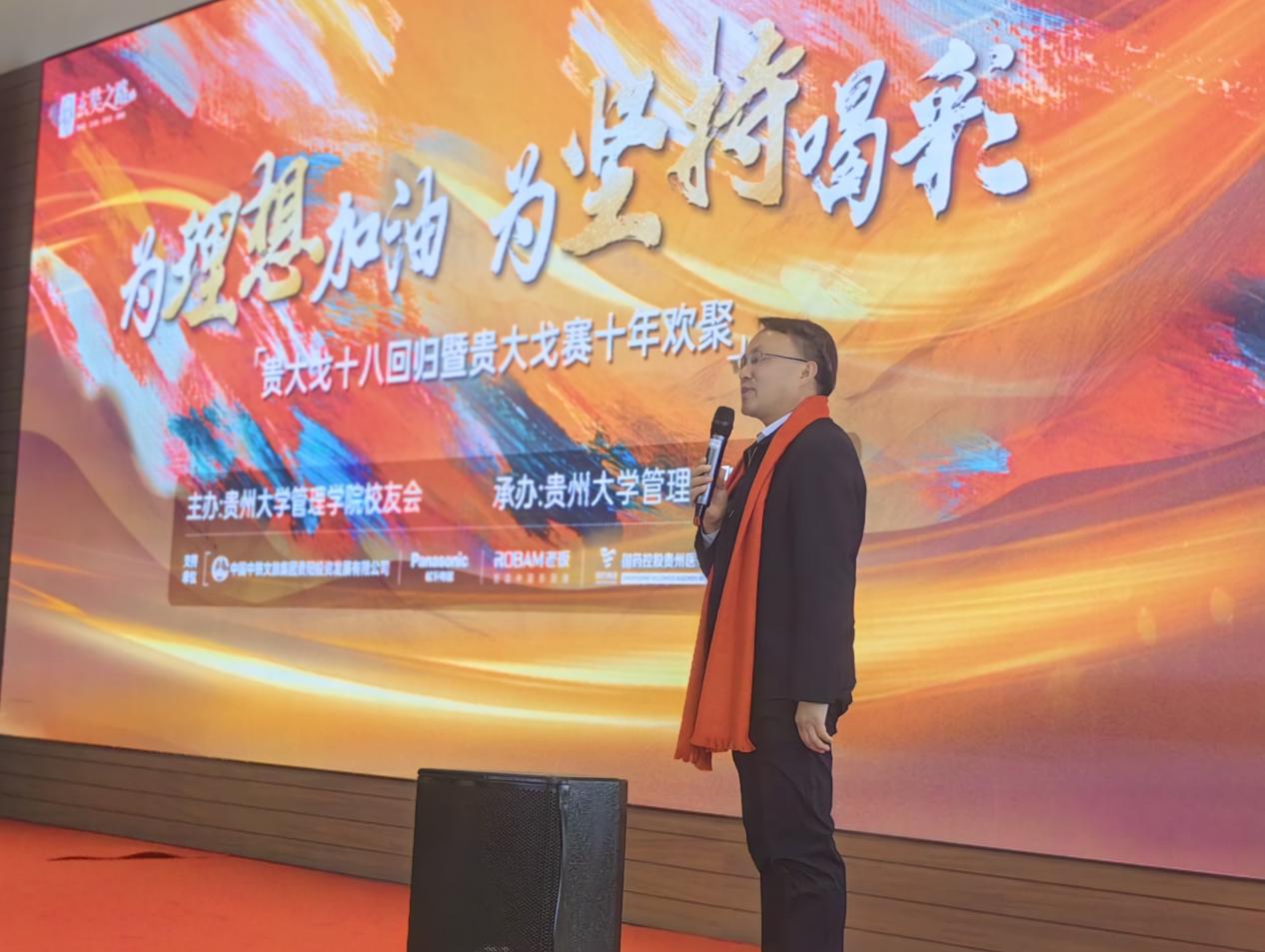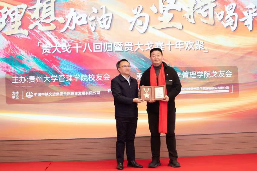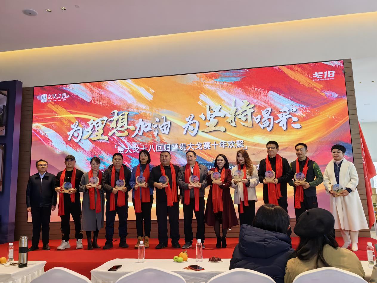 2023年12月23日,戈十八回归暨贵大戈赛十年欢聚庆祝活动隆重在中铁文旅青岩康养小镇举行。今年是玄奘之路戈壁挑战赛第18年,也是贵大参加戈赛10年。贵大管院院长、校友会会长李烨,350vip8888新葡的京集团党委正处级组织员、350vip8888新葡的京集团党委副书记(主持党委工作)周莉莉,350vip8888新葡的京集团副院长王婷、350vip8888新葡的京集团党委副书记、纪委书记邓琳、西部戈友联盟会长蒋磊、350vip8888新葡的京集团校友会执行会长张钊、MBA校友会会长汪健,贵大研究生导师胡文(校友)、中铁文旅贵阳公司总经理胡永清、副总经理梁济光、130余名戈友、校友、各届友人以及贵大EMBA“戈18”品牌赞助商、合作伙伴代表齐聚盛会,为戈十八喝彩,为戈十八战队中的每一位勇士感到自豪,为贵大戈友的坚持加油!