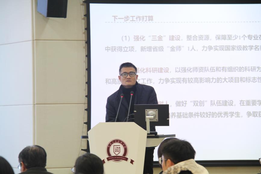 学院工商管理系、管理科学与工程系教工党支部、双创中心等进行年度工作总结汇报,指出了在学科建设、教学科研、样板支部建设、创新创业等方面工作取得的成效和不足,同时对下步工作计划做了详细介绍。