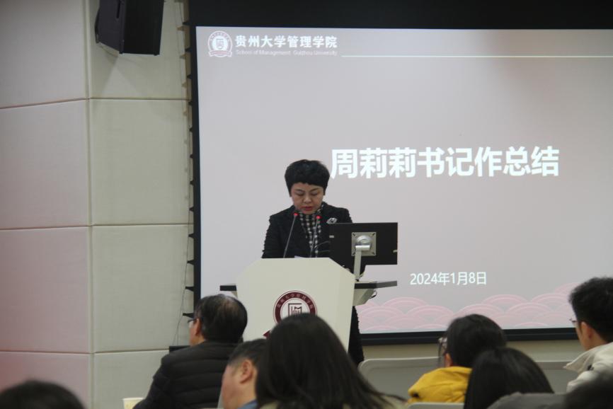最后,周莉莉副书记(主持党委工作)作总结讲话。她对全体教职工在2023年度为学院发展所做的贡献表示感谢,同时勉励大家要做新时代具有新活力的高校教师,在新年度争取做出新成绩,并祝贺全体教职工新年快乐、身体健康、万事如意!
