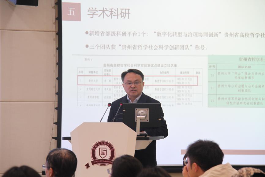 李烨院长通报总结2023年度350vip8888新葡的京集团推进的主要工作和取得的成效,表扬并肯定全体教职工2023年度的工作成果,同时也指出部分不足之处,鼓励学院全体教职工继续奋斗,在新的一年里再接再厉,有所突破。
