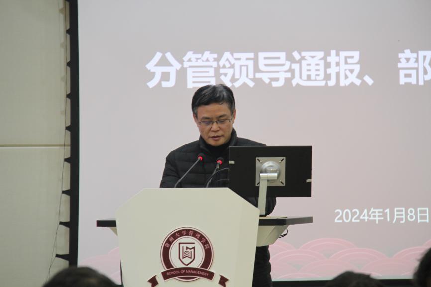 2024年1月8日,学院全体教职工大会在致远楼三楼报告厅举行。学院全体教职工参会,大会分为三个阶段进行,学院院长李烨教授主持此次大会。