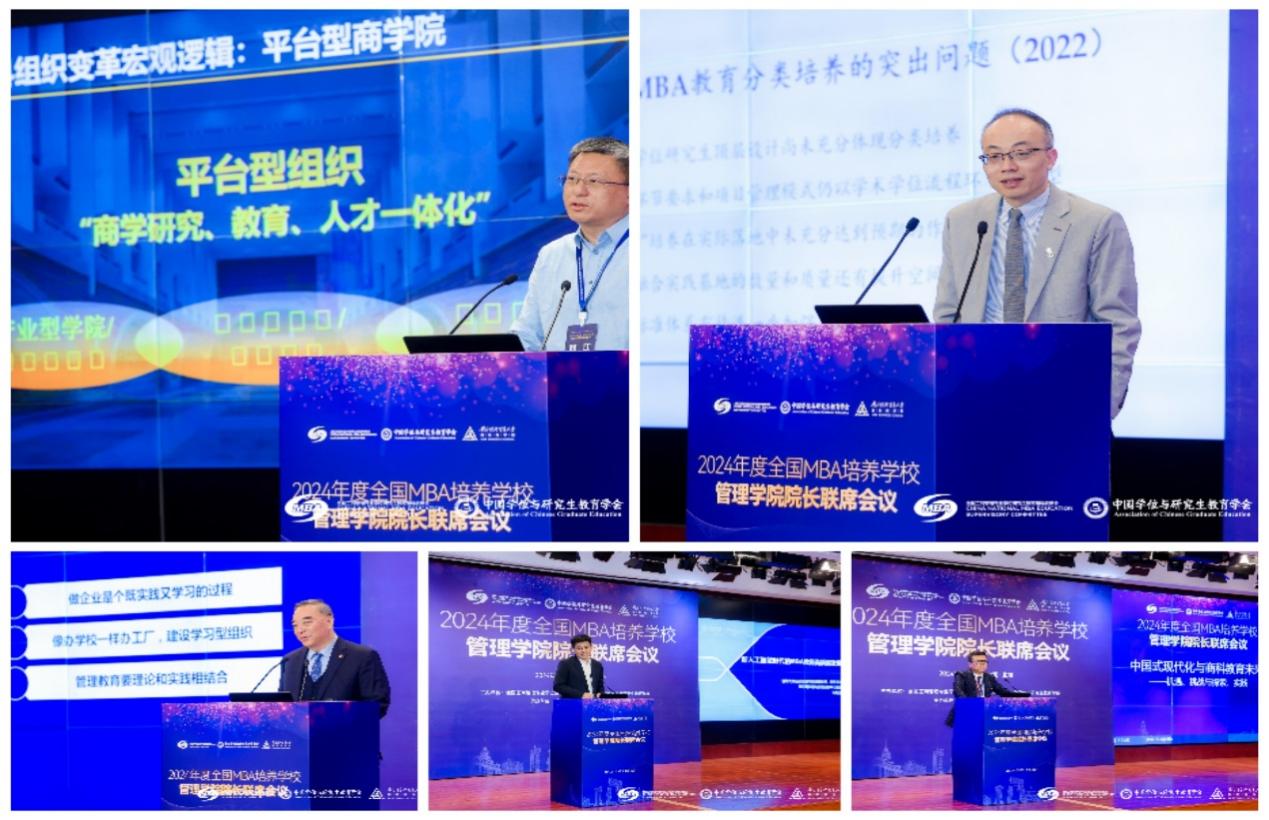 下午,“中国式现代化与商科教育未来—机遇、挑战与实践、探索”主题论坛由全国MBA教指委委员、兰州大学350vip8888新葡的京集团院长何文盛教授主持,全国MBA教指委委员、浙江大学350vip8888新葡的京集团常务副院长谢小云教授分享了“新时代MBA教育论文评价体系构建暨《工商管理专业学位类别硕士学位论文基本要求》解读”,对相关政策进行了详细解读和思考、清华大学经济350vip8888新葡的京集团党委书记陈煜波教授、华中科技大学350vip8888新葡的京集团院长杨治教授,同济大学经济与350vip8888新葡的京集团副院长谢恩教授,全国MBA教指委委员、对外经济贸易大学国际商学院院长陈德球教授分别从新人工智能时代MBA教育高质量发展、MBA产教融合、分类培养视角下的MBA教育体系以及管理案例生态建设等主题进行了分享。