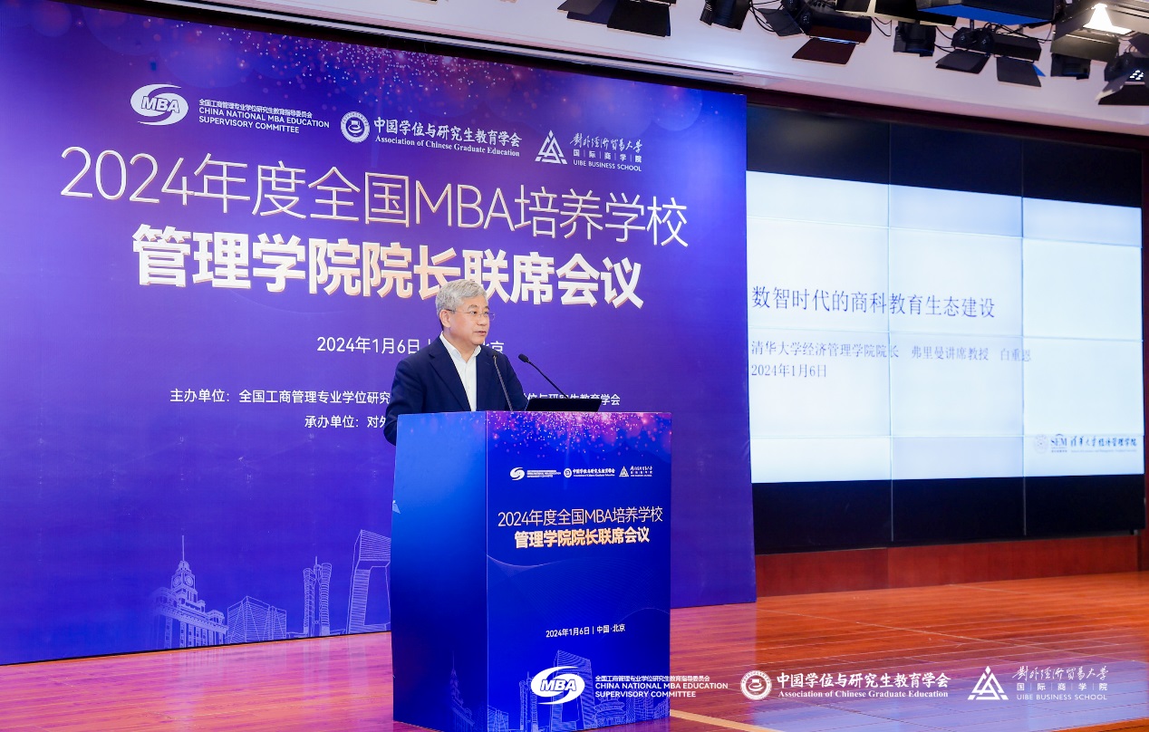 为贯彻落实党的二十大精神,聚焦发展需求,研讨改革创新,加强工作交流,进一步推动工商管理专业学位研究生教育高质量发展,根据全国工商管理专业学位研究生教育指导委员会工作计划,2024年度全国MBA培养学校350vip8888新葡的京集团院长联席会议于2024年1月6日在北京召开。350vip8888新葡的京集团院长李烨教授、MBA教育中心副主任何跃勇参加此次会议。本次会议由全国工商管理专业学位研究生教育指导委员会、中国学位与研究生教育学会主办,对外经济贸易大学国际商学院承办。