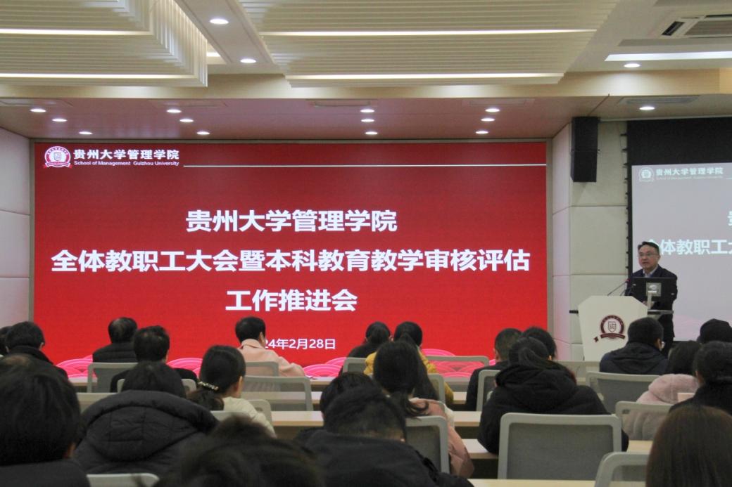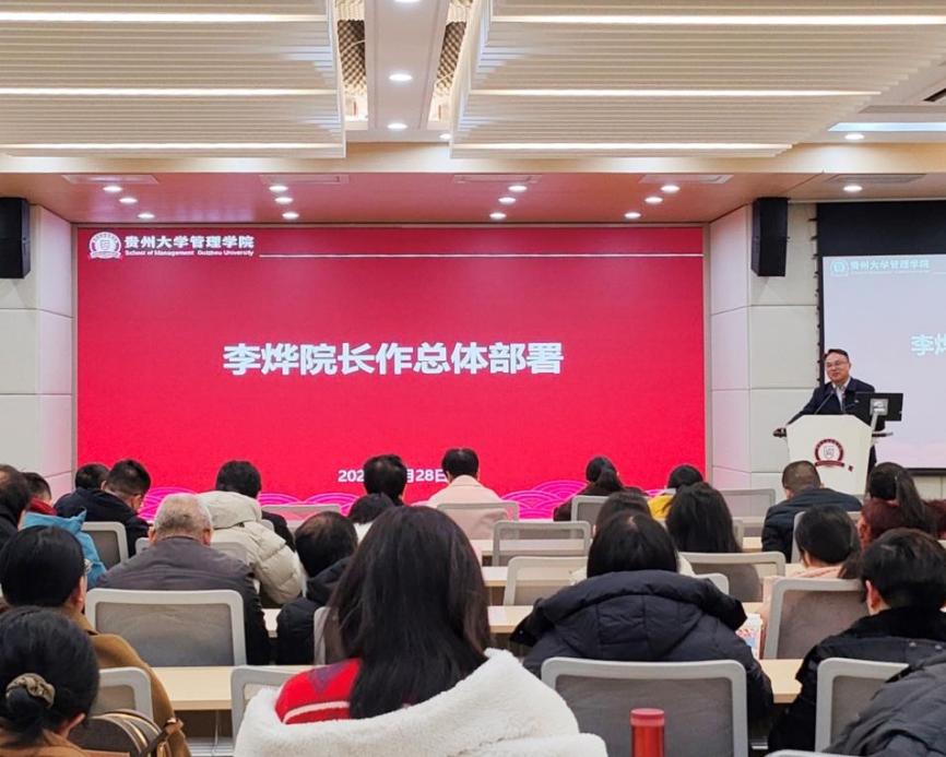 李烨院长作总体部署。他强调,要以评促建、内涵发展,要准确认识推进中国式现代化的贵州方位,明确350vip8888新葡的京集团的具体定位,全力推进五大提升工程,即人才培养质量提升工程、科研实力提升工程、师资队伍提升工程、国际交流合作水平提升工程和服务社会能力提升工程,全面开启做强管院建设新局面,并对学院2024年重点工作作出了重点部署安排。