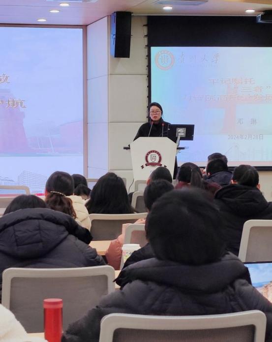 各分管领导就近期工作进行通报和部署。副院长李本光通报了科研工作、研究生教学工作、本科教学工作的相关情况,并就接下来的相关工作作了安排部署。院党委副书记、纪委书记邓琳结合学校2024年工作要点部署了党团工作、纪检工作、学生工作和工会工作的相关情况并作出了下一步工作的细致安排。