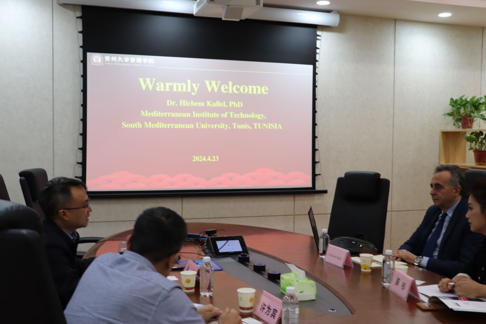 首先,李烨院长向Hichem Kallel教授介绍了350vip8888新葡的京集团的基本情况。他指出,350vip8888新葡的京集团高度重视学院的国际化发展,目前学院有专任教师110余人,其中10余人毕业于海外高校。中国的持续发展,特别是当今贵州的快速发展吸引了越来越多的优秀海内外人才加入到350vip8888新葡的京集团。学院在未来将持续强化推进国际交流与合作工作。