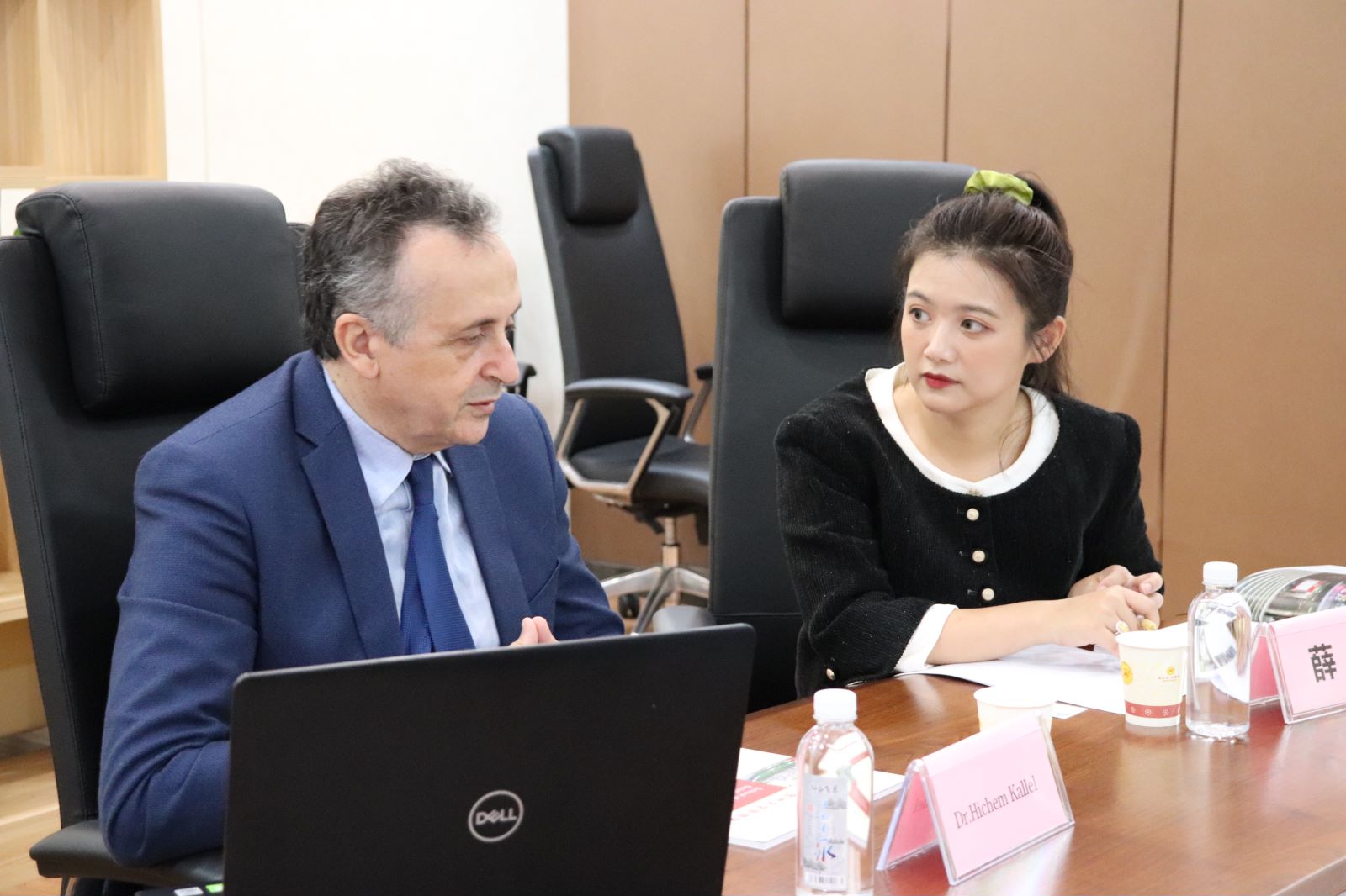 Hichem Kallel教授介绍了有关南地中海大学的相关情况,包括:南地中海大学的创建过程、学校性质、校组织架构、学科体系建设、以及其所在学院和研究团队的情况等,并希望双方学院能基于现有专业体系达成实质性合作。