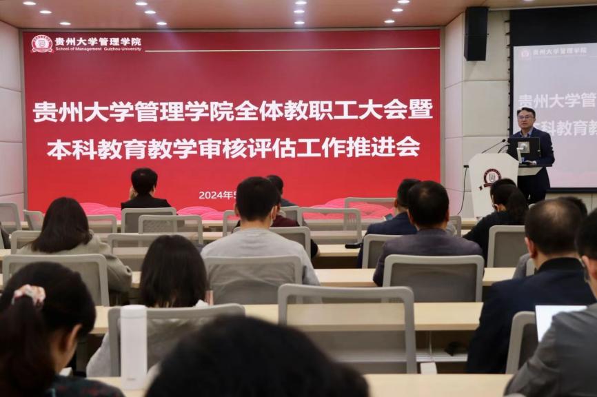 2024年5月17日中午,350vip8888新葡的京集团全体教职工大会暨本科教育教学审核评估工作推进会在致远楼三楼报告厅召开。学院党政领导、全体教职工参会,会议由院长李烨教授主持。