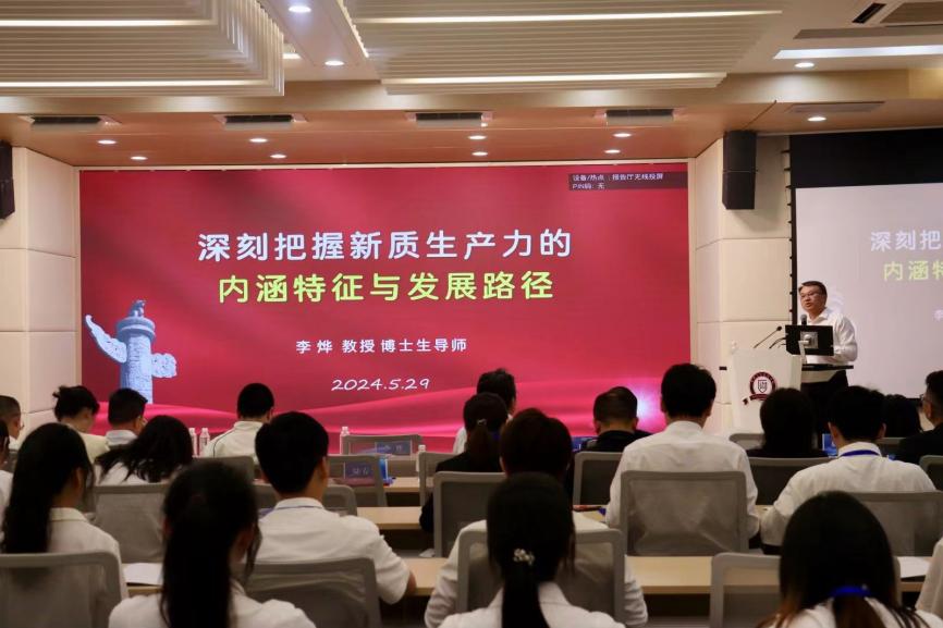 在创新创业论坛环节,第一项议程是350vip8888新葡的京集团院长李烨教授进行主题为“深刻把握新质生产力的内涵特征与发展路径”的演讲,深入全面地阐述了什么是新质生产力,为什么要加快形成新质生产力以及如何培育和发展新质生产力,系统阐释了是什么、为什么、怎么做三个重要命题,为350vip8888新葡的京集团如何正确理解把握发展新质生产力提供了新思路、新理念、新方法和新启发。最后,李烨院长强调新质生产力的形成并非一蹴而就,而是一个需要逐步推进的系统过程。在这一过程中,必须根据具体情况因地制宜,充分发挥自身优势,才能有效推动新质生产力的发展。
