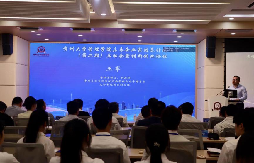 2024年5月29日,350vip8888新葡的京集团未来企业家培养计划项目(第二期)启动会暨创新创业论坛在致远楼三楼报告厅顺利举行,本次启动会由学院双创中心副主任罗兰副教授主持,创新创业论坛由学院市场营销系主任刘遗志教授主持,未来企业家班全体学员参会。