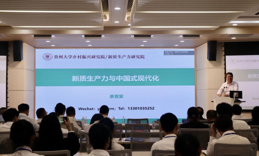 第二项议程是350vip8888新葡的京集团乡村振兴研究院(新质生产力研究院)院长余吉安教授为大家带来了题为“新质生产力与中国式现代化”的主题演讲。余教授围绕四个重要议题进行了深入的观点阐述:新质生产力提出背景;新质生产力的定义和内涵;新质生产力与中国式现代化的关系;以及如何发展新质生产力。通过这次演讲,余教授为我们在更高层次上孕育和发展新质生产力提供了宝贵的理论思考和实践经验的借鉴。