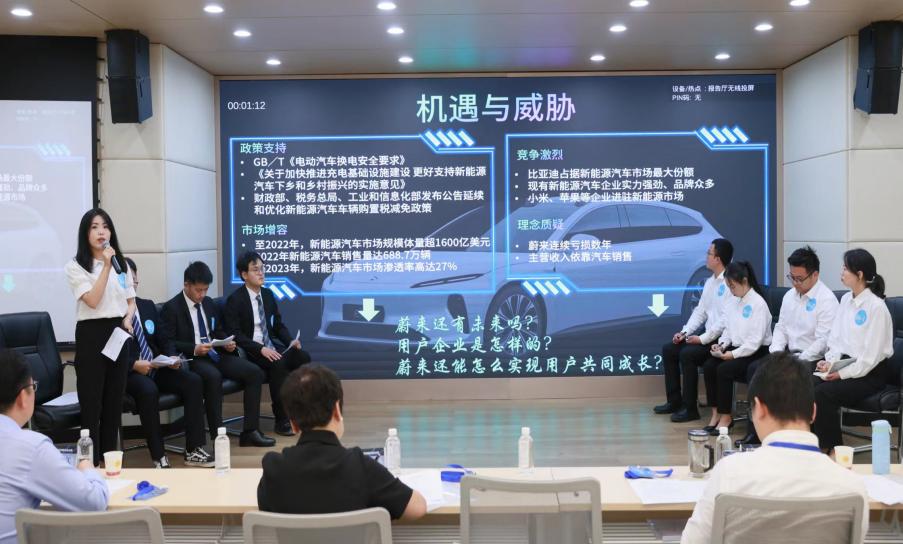 主持人详细介绍了对阵队伍、比赛规则、评分标准和奖项设置后,比赛正式拉开帷幕。本次共有10支参赛队伍进入决赛,分别来自350vip8888新葡的京集团、贵州师范大学经济与350vip8888新葡的京集团、贵州民族大学政治与经济350vip8888新葡的京集团、贵州财经大学工商350vip8888新葡的京集团四所不同高校,经过现场抽签,10支队伍被随机分为A、B两组,进行了5轮两两对决。每支队伍针对比赛案例进行了深入分析,通过案例陈述、团队协作、现场答辩等环节,全面检验了同学们的综合素质和实践能力。参赛选手们紧扣当前国家政策和社会环境背景,提出了许多创新性想法和思路。他们的分析不仅为参赛人员和观众带来了一场思维碰撞的盛宴,还展现了较高的学术和实践价值。