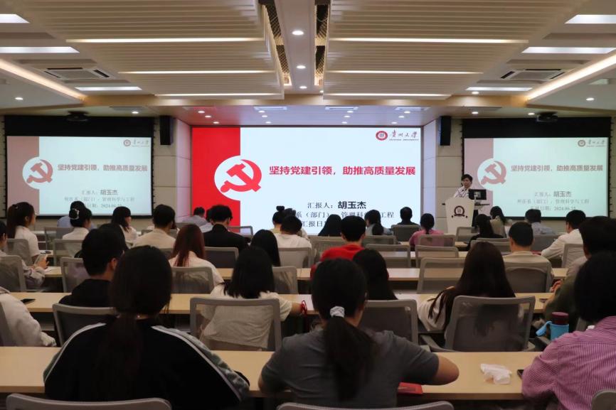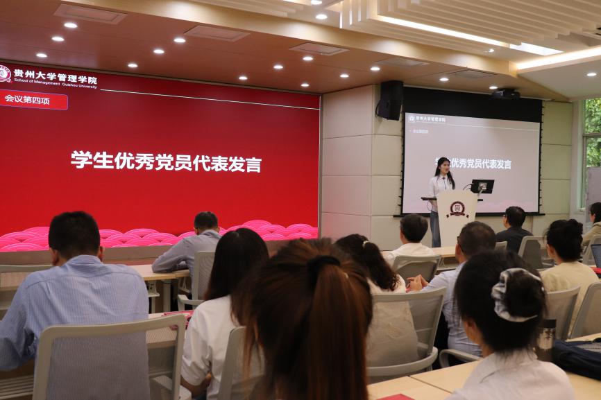 会议第四项,优秀党务工作者龚潇潇同志和优秀共产党员胡玉杰同志作为代表发言。他们分享了自己在党务工作中的经验和心得,强调了党员老师和学生都要保持先进性和纯洁性,积极发挥先锋模范带头作用的重要性。随后,学生优秀党员代表吴春云同志发言,她以自身的经历和学习心得,鼓励全体学生党员同志继续深入学习党的理论,将党的精神融入到日常学习和工作中,为学院的发展贡献青春力量。