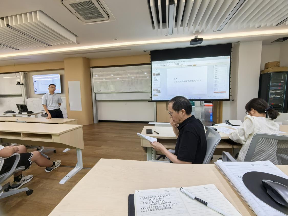 教务处李静老师、院督导组王茂春老师和相关专业老师分别对王老师上课过程、教学设计、内容重难点安排等展开讨论,提出意见和建议。王茂春老师首先肯定了王田龙老师的课程准备的充分程度、教学过程中采用的动画、案例图片等多种教学方式。之后指出了教学中的一些需要改进之处,比如如何提高学生兴趣、增加与学生互动、知识点转换和过渡的设计等。郭峰老师建议一定要从工程管理专业自身要求出发、仔细研读专业培养方案,有侧重地安排教学内容。