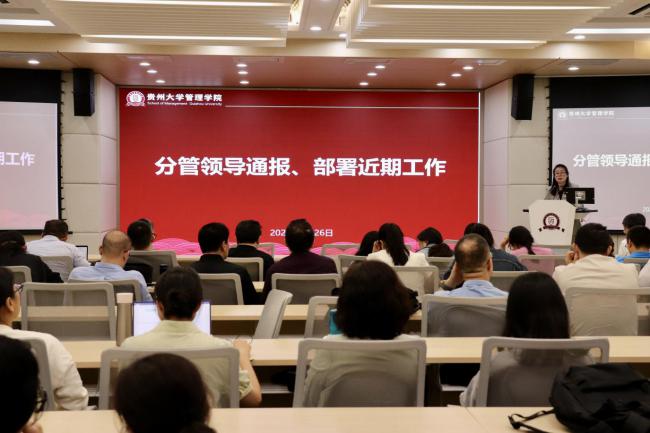 副院长许为宾从学院国际交流合作工作、案例中心工作、研究生教育与科学研究以及本科审核评估工作方面的进展进行通报和部署。指出了我们学院目前与高质量目标考核要求的差距,并重点就本科教育教学审核评估工作的完成情况,下步安排等作了部署。