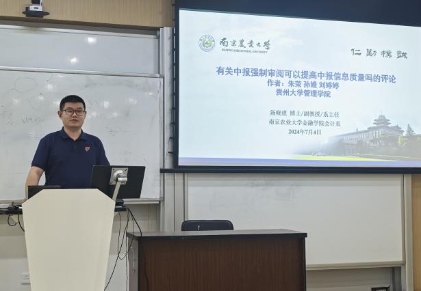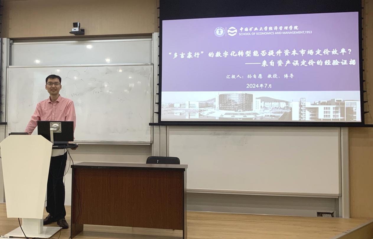 中国矿业大学的孙自愿教授汇报了他的最新论文《“多言寡行”的数字化转型能否提升资本市场定价效率?—来自资产误定价的经验证据》。该文章从资产误定价视角探讨了企业数字化信息披露操纵如何影响资本市场定价效率,研究发现“多言寡行”的数字化转型加剧了资产误定价,不利于提升资本市场定价效率。相比于资产低估,数字化信息操纵更容易导致资产高估。该研究结论有助于甄别企业数字化信息披露真实性,同时为监管上市公司的数字信息披露操纵行为、完善数字信息披露体系提供决策借鉴。