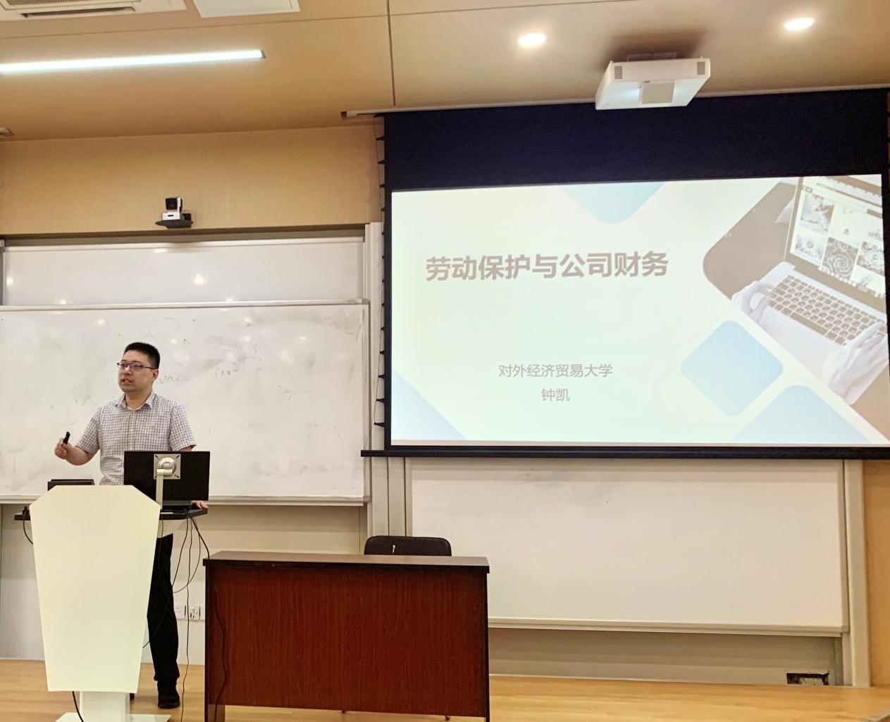 对外经济贸易大学MBA中心主任钟凯副教授为350vip8888新葡的京集团的师生带来“劳动保护和公司财务”的前沿讲座。钟教授首先介绍自己关注劳动保护和公司财务这个话题的起源,再从宏观和微观两个层面介绍该话题的研究领域,并总结该领域研究的四个理论框架:劳动供需分析框架、代理理论分析框架、利益相关者治理框架、信息不对称分析框架。最后,钟教授从劳动保护立法、执行和非法律手段劳动保护等角度展望该领域未来的研究方向。