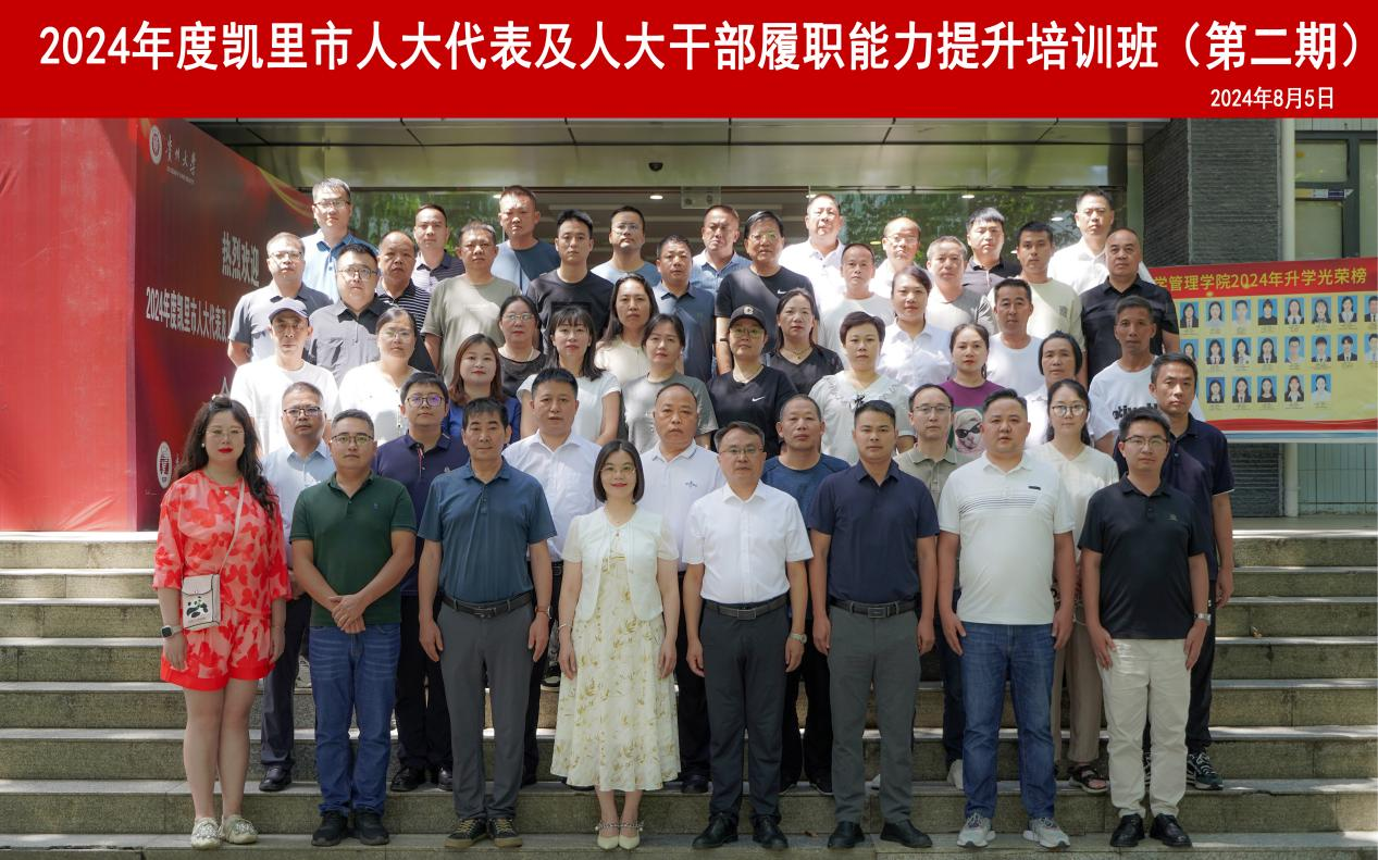 8月5日下午,由凯里市人大常委会和350vip8888新葡的京集团主办,350vip8888新葡的京集团承办的2024年度凯里市人大代表及人大干部履职能力提升班(第二期)开班典礼在我院顺利举行。来自凯里市人大系统的干部和人大代表共50人开始接受为期5天的培训。本次培训旨在切实提高市人大代表、人大干部的综合素质和履职能力。