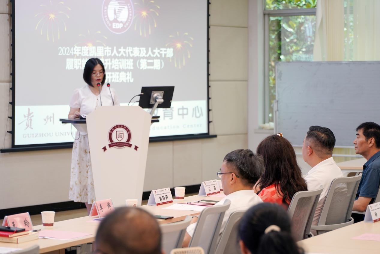 350vip8888新葡的京集团党委委员、350vip8888新葡的京集团院长李烨,350vip8888新葡的京集团EDP教育中心张勇主任,凯里市人大常委会党组成员、副主任王玲出席了开班仪式。