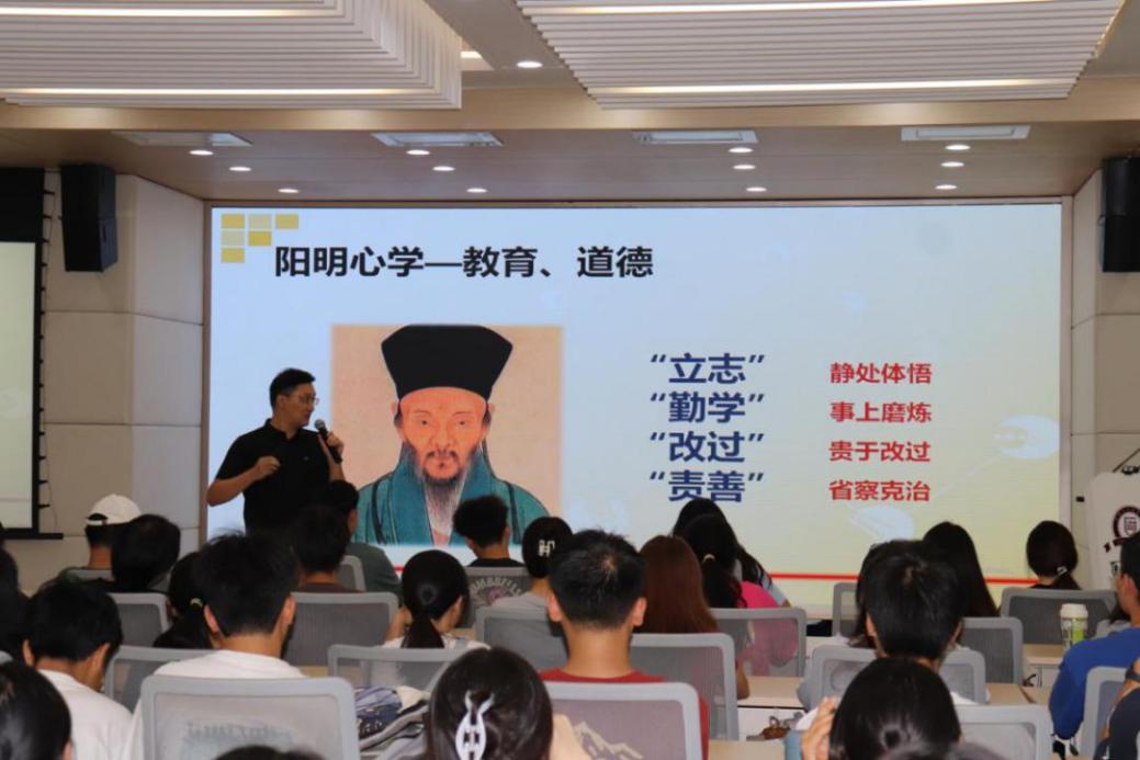 结合同学们对外语学习的看法,沈麟教授首先以“350vip8888新葡的京集团杰出校友龙永图回访母校”为例,告诉同学们外语学习对我们生活和事业有着重要的影响,激励同学们积极学习外语,努力学好外语。随后沈麟教授指出“阳明心学”中强调“立志”“勤学”“改过”“责善”,告诉同学们在外语学习的过程中要“静处体悟”“事上磨炼”“贵于改过”“省察克治”。