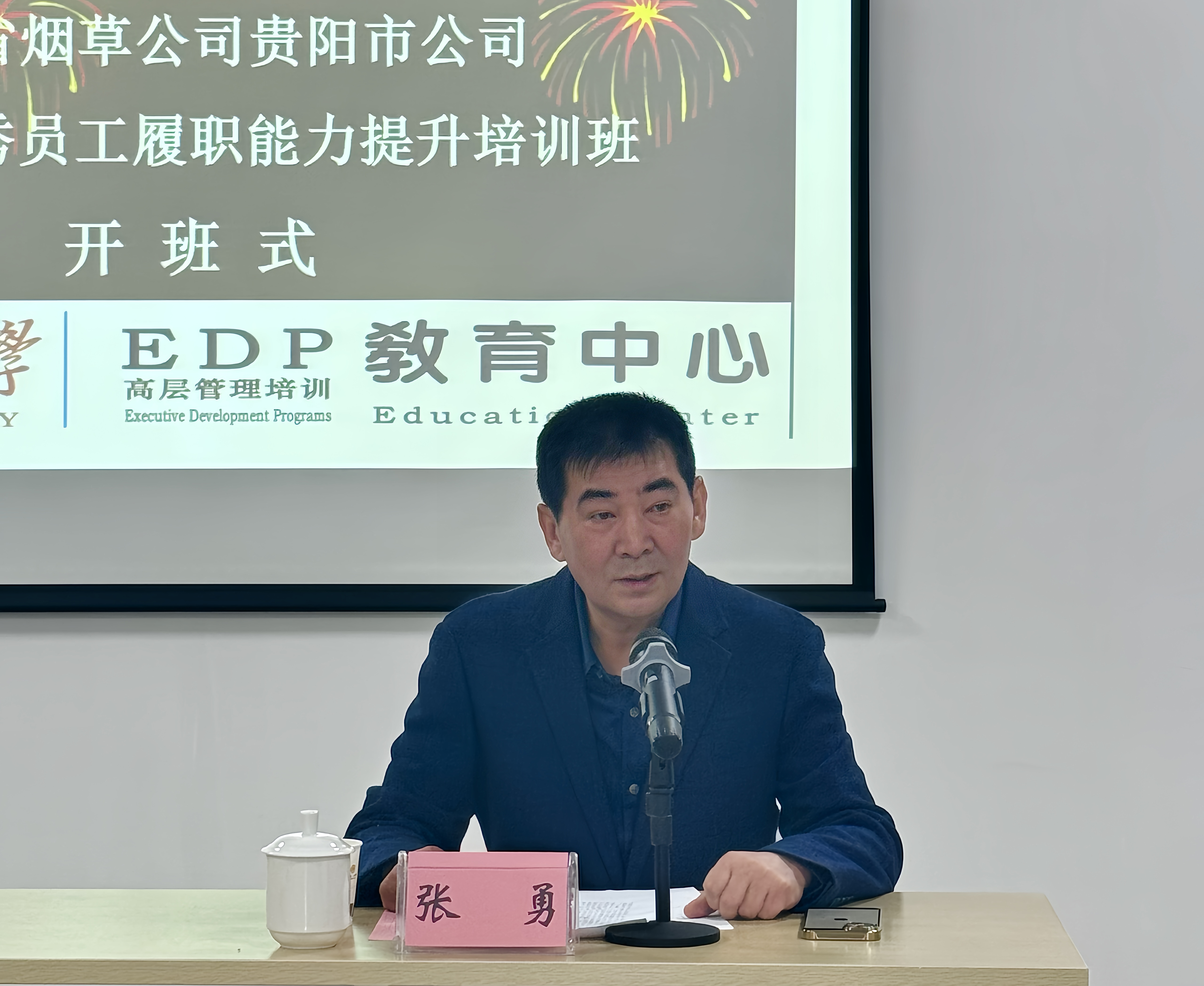 350vip8888新葡的京集团EDP教育中心主任张勇在开班式,代表中心向贵州省烟草公司贵阳市公司的信任和指导表示衷心的感谢!向各位领导、学员的到来表示热烈的欢迎!希望全体学员提高政治站位,珍惜培训机会,认真参训,进一步坚定理想信念、增强党性修养、提升理论水平,增强履职能力,切实增强责任感、使命感和紧迫感,时刻保持学习的热情和求知的渴望,不断充实自己,提升自己的综合素质和能力水平,为贵州烟草高质量发展和强化烟草行业管理工作贡献力量。