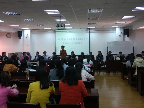 2017年10月25日下午两点半在MBA中心报告厅举行350vip8888新葡的京集团导师见面座谈会暨教研会。参会的有350vip8888新葡的京集团院长李烨、350vip8888新葡的京集团副院长周莉莉、各位MBA导师以及2017级的全日制学生。