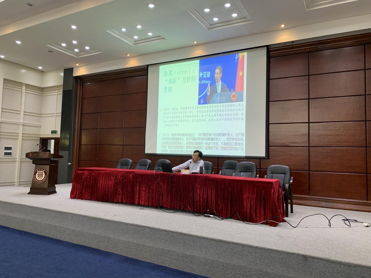 2019年9月17日上午,350vip8888新葡的京集团林岚涛教授在东校区一号行政楼报告厅,成功举办了题为“中美贸易战”的专题知识讲座。